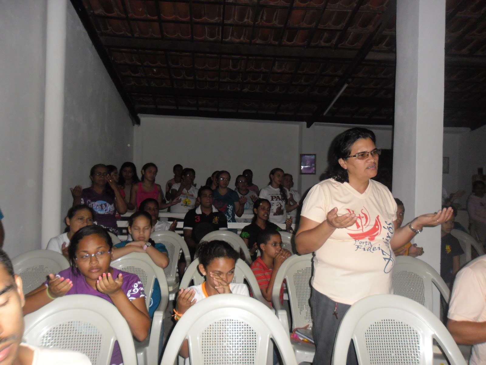 muita oração, louvor, pregações, Adoração e Santa Missa.